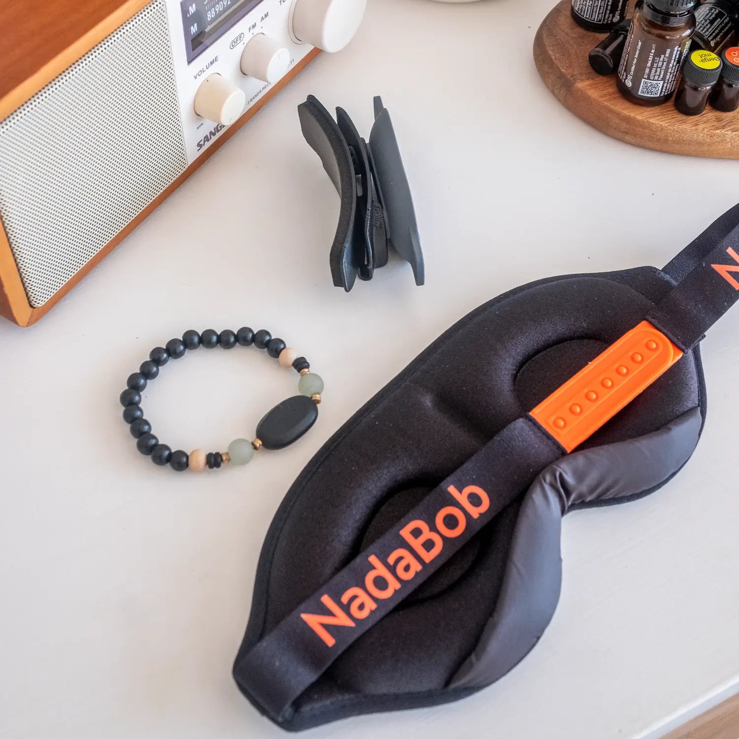 The NadaBob Custom Eye Mask is your personal blackout curtain for blissful sleep on the go. Soft, adjustable, and designed to integrate flawlessly with the NadaBob system, it's the key to waking up refreshed, no matter where you are.- Perfect Pair: Engineered to complement the NadaBob Clip.